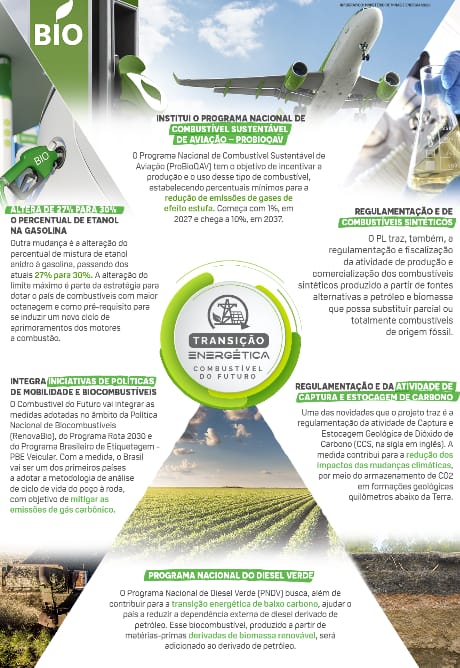 A proposta define, ainda, o marco regulatório dos combustíveis sintéticos no Brasil, cuja regulação será atribuída à Agência Nacional do Petróleo, Gás Natural e Biocombustíveis – ANP. Esse tipo de combustível vem sendo chamado mundo afora de “e-Fuel” e é uma das iniciativas que vêm sendo adotadas para reduzir as emissões de gases poluentes dos combustíveis de origem fóssil, contribuindo para o melhor desempenho ambiental dos motores à combustão no contexto da transição energética, sem necessidade de modificação de peças ou componentes.