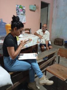 Alunos dos cursos Bacharelado Interdisciplinar de Ciências e Engenharia Agrícola e Ambiental, da UFSB, aplicam questionários do Projeto de Extensão Soluções Integradas para o Saneamento do Assentamento Alemita, em parceria com a EMASA.